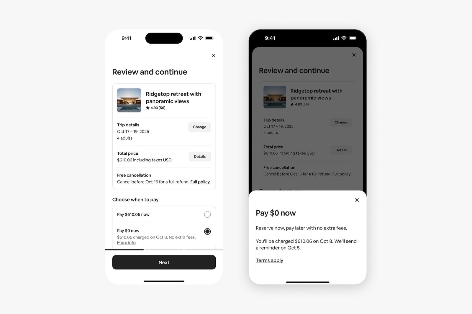 Traditionally, Airbnb guests had to pay when booking or through a payment plan, which can lead to headaches when it comes to canceling trips. Now, guests can book and pay later, giving them more time to work out finances with others in their group or finalize travel plans.