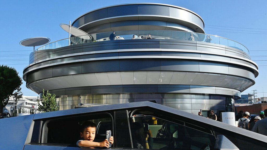 The Tesla Diner, an electric-vehicle (EV) charging hub and roadside restaurant that opened in July in Los Angeles, is not your typical service station. The architecture is sleek and retro-futuristic. The menu offers traditional diner fare with a deluxe twist (including wagyu-beef chilli). Optimus, Tesla’s humanoid robot, serves popcorn at an open-air cinema, which drivers can enjoy while their vehicles charge.